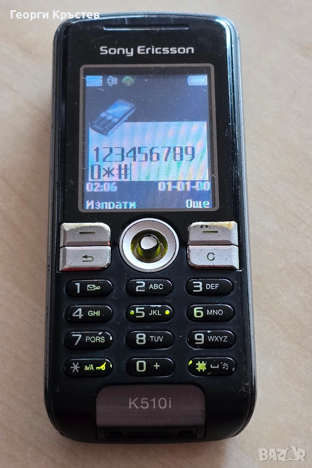 Sony Ericsson K510 - телефона се включва и работи, тестван с А1, зарежда си батерията, но зарядното трябва добре да се намести, понякога губи обхват, проблем с джойстика, ОК е добре, но не реагира на посоките, само от време на време, но не е ОК, слушалката, микрофона, камерата и клавиатурата са ОК, има БГ меню, горе - долу добър външен вид, без батерия и зарядно.