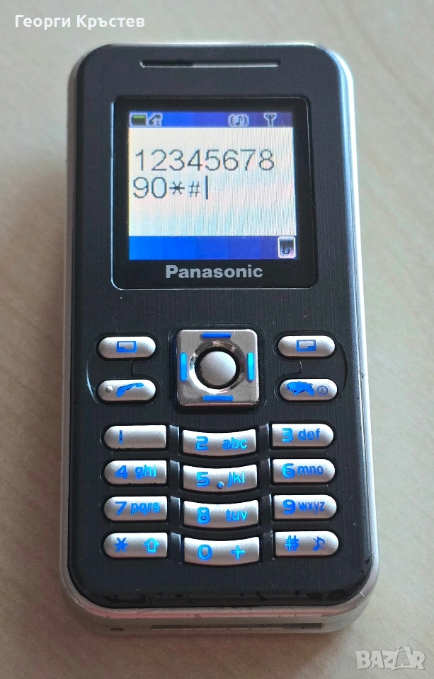 Panasonic X100 - телефона се включва и работи, но НЕ чете СИМ, зарежда си батерията, добър външен вид, без батерия, заден капак и зарядно.