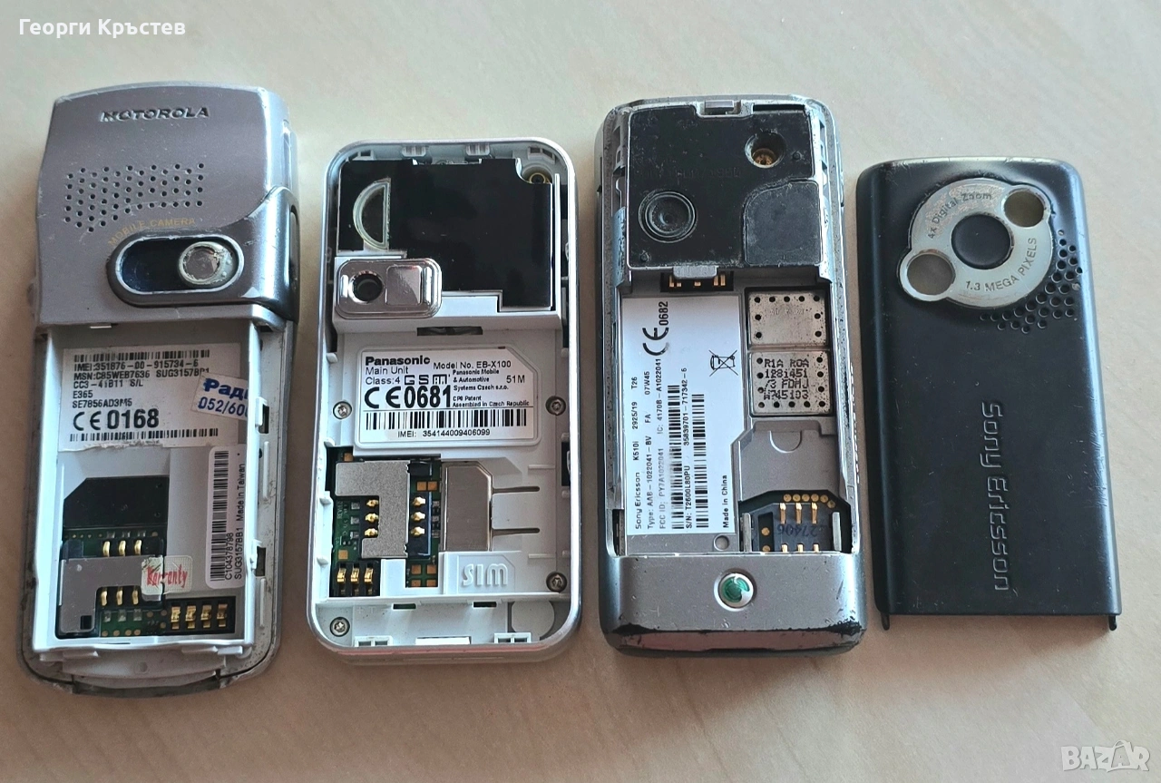 Телефони, Motorola E365, Panasonic X100 и Sony Ericsson K510 - за ремонт - трите се дават комплект за 15 €, поотделно не се дават.