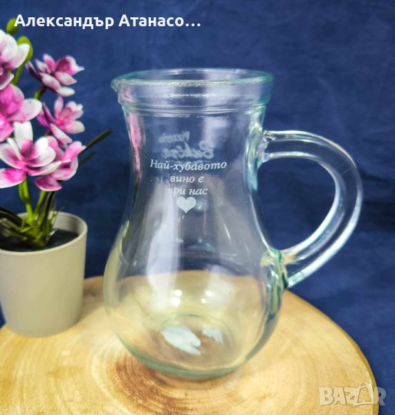 Персонализирана стъклена кана-гарафа с дръжка → Обява 45640513