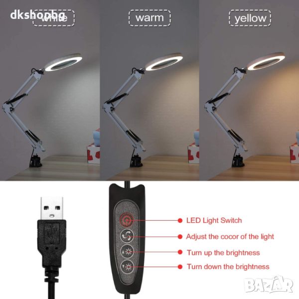 Лупата е с кръгла луминесцентна лампа монтирана под лупата и осигуряваща отлично осветление.