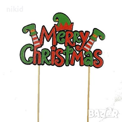 Джудже части тяло Merry Christmas Коледен картонен топер украса за торта декор парти → Обява 45641415