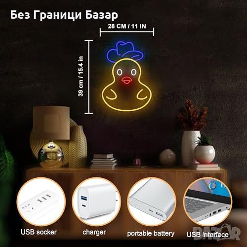 Неонов Знак във Форма на Патица: Забавна и оригинална декорация, идеална за всяко помещение.
