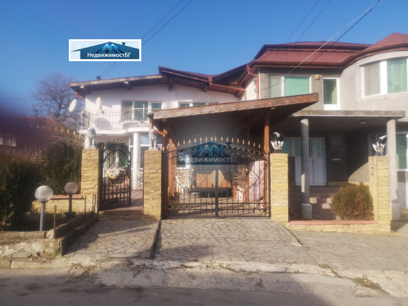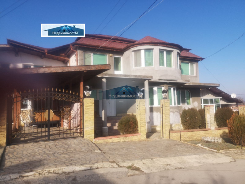 Имотът разполага с равен и голям двор 920 кв.м.,къща със РЗП: 570 кв.м., допълнителна къща с квадратура 60 кв.м., гараж, 35 кв.м. (подходящ за голям джип), свободно паркиране на поне 5 автомобила в двора и на още толкова пред къщата. Строителство 2006г. Разпределението е както следва: Първата част от къщата - антре, голяма всекидневна с кухненска част, спалня, комбиниран санитарен възел, вътрешно стълбище с подстълбищно пространство към втори етаж. На втори етаж са ситуирани две спални, офис, тоалетна, балкон. Втората част от къщата която също има и отделен вход както и топла връзка между двете е със следното разпределение:На първия етаж се намират антре, огромна и светла всекидневна с бар, отделно голяма трапезария, голям санитарен възел с мокро помещение. По красиво вътрешно стълбище преминаваме към втори етаж където се намират пет спални, два комбинирани санитарни помещения и два балкона. Непосредствено до основната къща се намира по-малка къща на един етаж със следното разпределение: голяма всекидневна с бар и кухненска част, спалня, комбиниран санитарен възел и голям гараж, Добре поддържан двор с декоративни елементи.