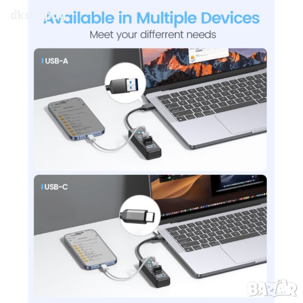 Компактен и Лек Дизайн: Изключително лесен за пренос, този USB HUB се справя с вашия нужди от допълнителни портове без тежестта на големите устройства.