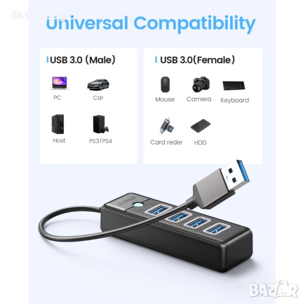С 4-портовия USB HUB 3.0 ще преобразите вашето работно пространство, предоставяйки ви удобство и гъвкавост при свързване на периферни устройства.
