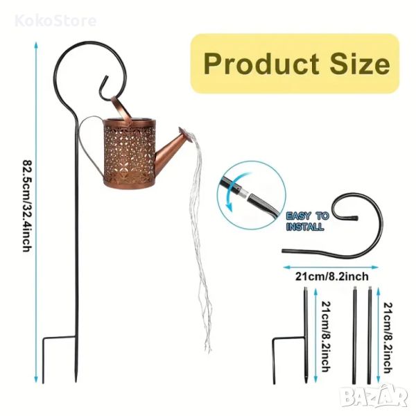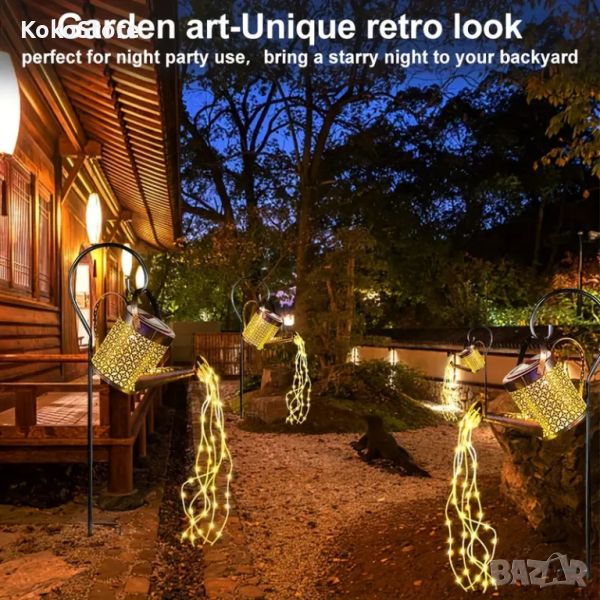 Декоративна градинска лейка със соларна светлина - топла бяла светлина . Водопадна , струйно висяща светлина .