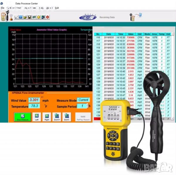 Професионален анемометър/data logger за измерване скорост,обем и темп., 20214265