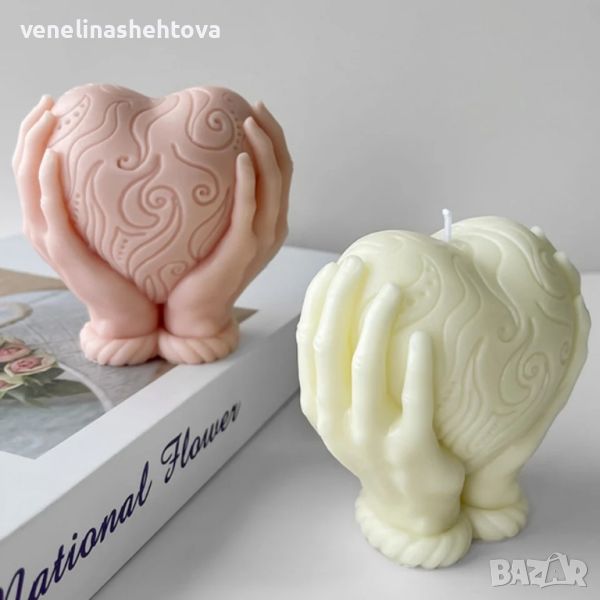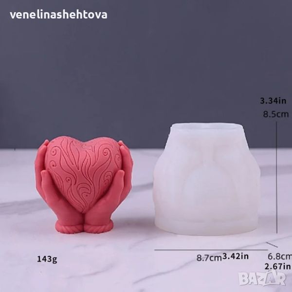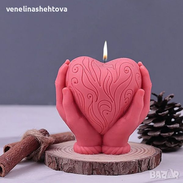 3D голямо сърце с ръце Силиконов молд форма за свещи сапун фондан → Обява 45650419