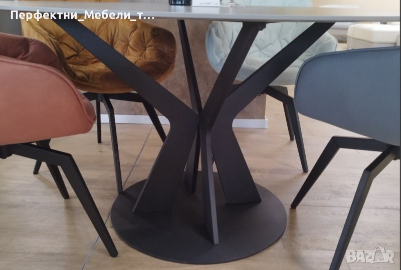 Дизайнерска трапезна маса с керамичен плот 135 см. диаметър → Обява 45650434