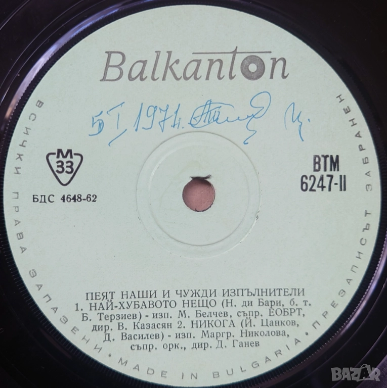Грамофонни плочи 7" сингли Балкантон цени в обявата → Обява 45650688