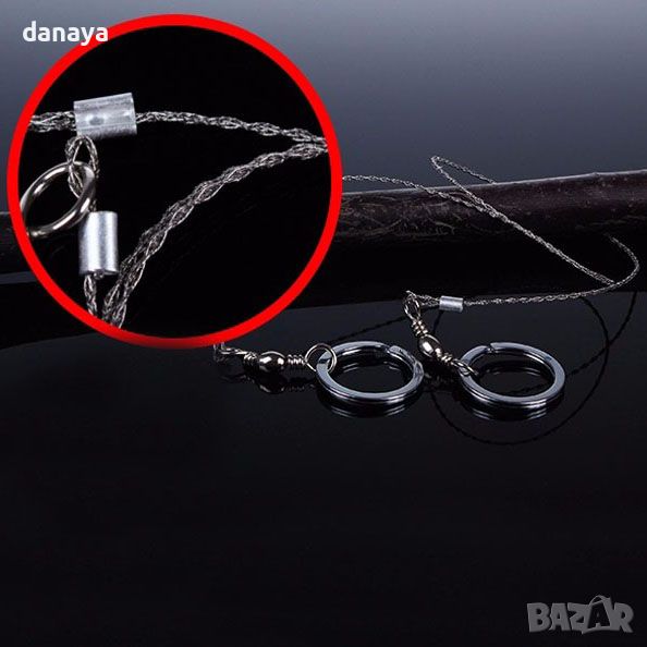 Малко трионче с метална корда за рязане. Побира се в джоб, а може да се окачва и върху чанта или колан. Супер леко е и лесно се отваря и сгъва, а ръкохватката му е удобна и здрава. Кордата му е от стомана, с дължина 60 см, способна да прорязва почти всякакви материали. Може да срязва дърво, гума, пластмаса, плексиглас, меки метали. Леко, здраво и безопасно. Незаменим инструмент за оцеляване. Металното въже е приложимо при разходки в природата, лов и риболов, преходи, къмпинг и лагеруване.