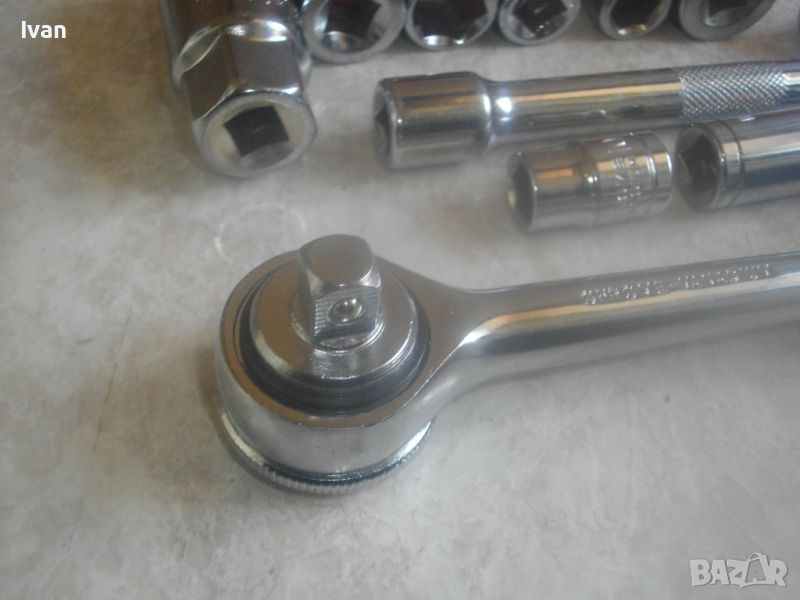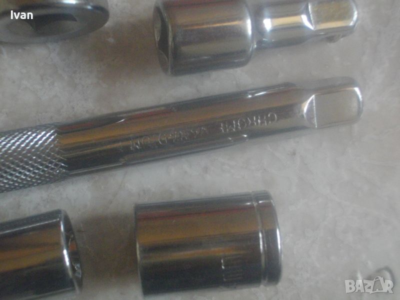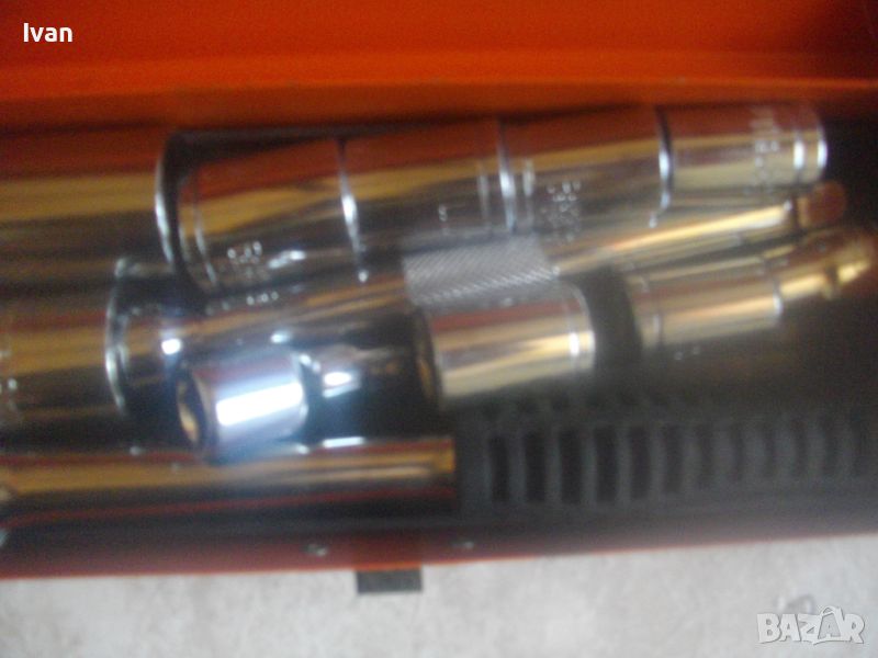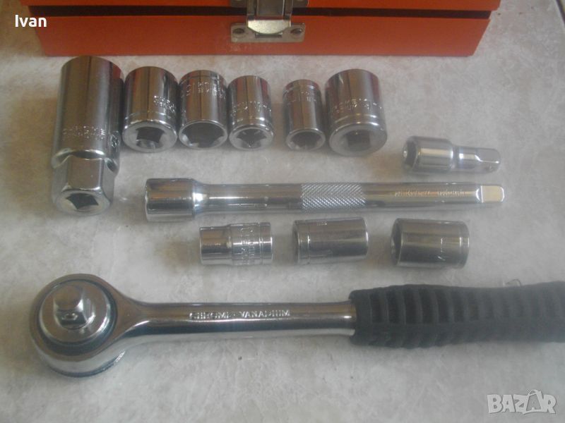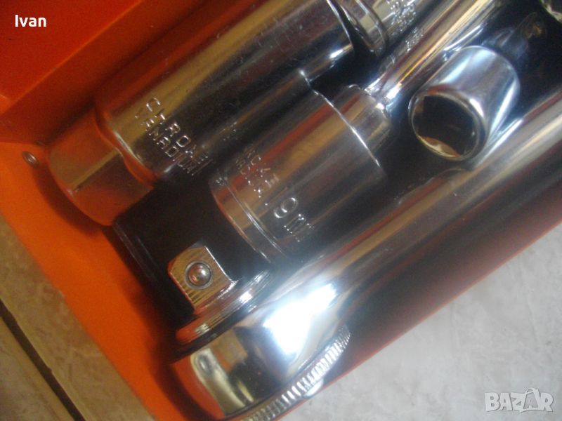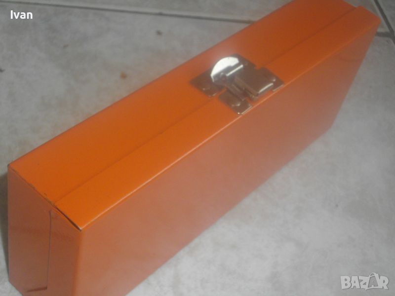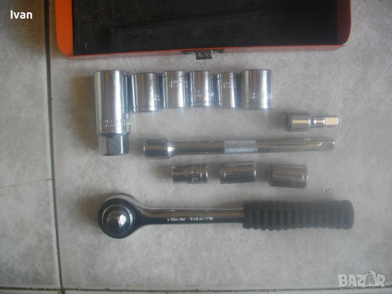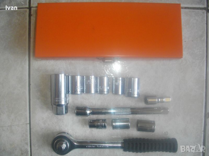ОПИСАНИЕ на нова гедория/гидория шведска на Скандия в оригинална оранжева метална кутия.. Цена 199 лв. Съвсем нов комплект инструменталиум гедория. Марка SKANDIA. Висок клас оригинално шведско професионално производство. Маркировки на всеки компонент а материала Chrom-Vanadium. Маркировка на марката на тресчотката. Комплектът включва къс и дълъг адаптери, тресчотка реверсивна с гуммирано покритие на дръжката, 9 бр. камъни торсове накрайници - 10 ммр 11 мм, 12 мм, 13 мм, 14 мм, 15 мм, 17 мм, 19 мм, голям 13/16 цол.Метална кутия без драскотиинка, с металнаа копчалка. Размери на кутията - 215х85х15мм. Тегло на комплекта - 1,2 кг. Цена 199 лв.