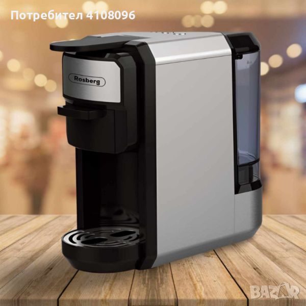 Кафемашина 8in1 Rosberg/Voltz Premium Инокс , 19 бара/ 1450W, 2 ГОДИНИ ГАРАНЦИЯСъвместима със всички видове капсули
