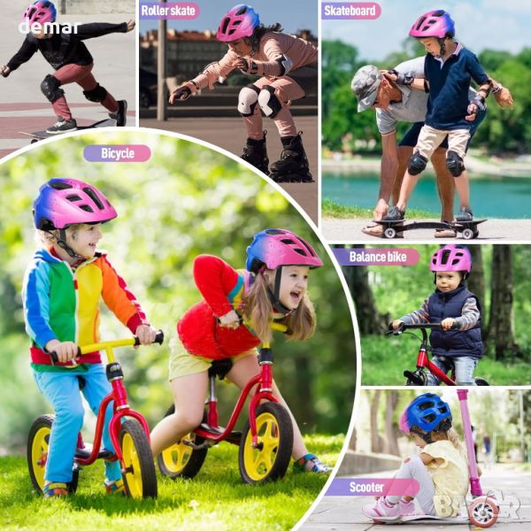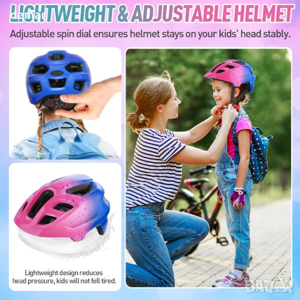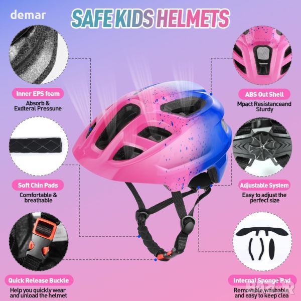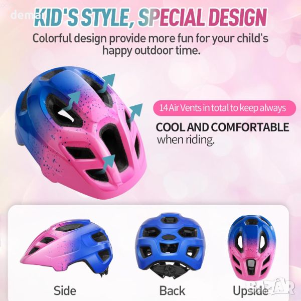 RaMokey Детска велосипедна каска с козирка за деца 3-13 г., S/M 48-56CM, розово-синьо