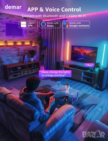 Интелигентната стенна лампа Lepro WL1, оборудвана с алгоритъма LightGPM AI, осигурява светлинни ефекти MagicColor, отговарящи на вашите емоции и команди. Това устройство поддържа гласов контрол чрез приложението Lepro+ и е съвместимо с Alexa и Google Assistant, като предлага динамични светлинни ефекти, базирани на изражения на лицето и гласови подкани. Той включва LightBeats Music Sync, позволявайки на светлините да се синхронизират интелигентно с музика или звук от игри. Персонализирайте осветлението с регулируем цвят, наситеност и яркост за всеки сегмент чрез приложението Lepro+ и оформете настройката на светлината с помощта на включените 6 сегмента и 2 ъгъла. Допълнителните функции включват графици за осветление за автоматично включване/изключване, настройки за събуждане и спиране и групов контрол с опции за споделяне на устройства. Забележка: Съвместим само с 2,4 GHz WiFi и не поддържа приложенията „Smart Life“ или „Lepro LampUX“.