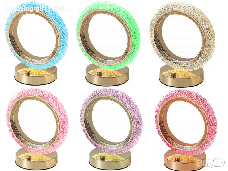 Настолна нощна лампа пръстен кристален led rgb,6 цвята на светлината !
