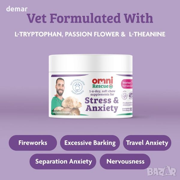 OMNI Добавка за кучета за облекчаване на безпокойство, за дъвчене, 35+ кг