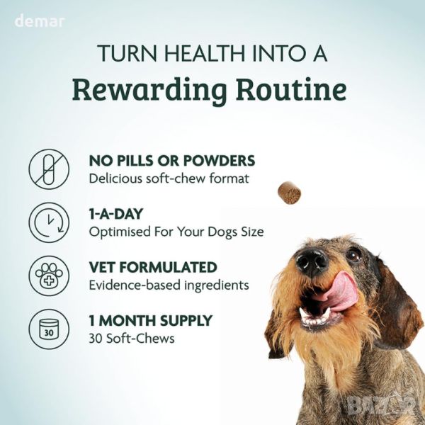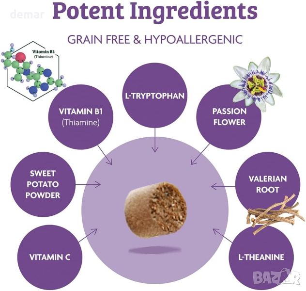 Тези успокояващи добавки за стави за кучета са изработени със съставки като L-триптофан, пасифлора, корен от валериана и L-теанин, известни със своите успокояващи свойства, за подпомагане на кучета, страдащи от стрес и тревожност. Всеки контейнер осигурява едномесечен запас от лесни за администриране хапчета за дъвчене веднъж дневно, които са насочени към проблеми като тревожност при раздяла, прекомерен лай и агресия. Тези ветеринарномедицински добавки без жестокост не съдържат съставки, получени от животни, в съответствие с нашия ангажимент за устойчивост на околната среда. Подходящи за кучета от всякакъв размер, тези добавки са идеални за подобряване на здравето на ставите и цялостната жизненост на вашия домашен любимец.