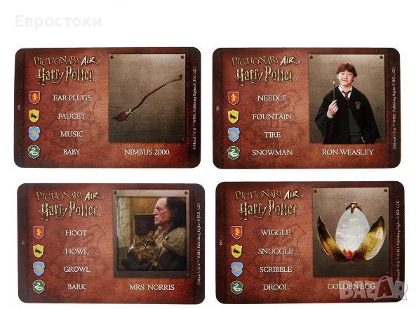 Тази версия на класическата семейна игра за рисуване включва 112 двустранни карти с улики, вдъхновени от Wizarding World, които играчите рисуват във въздуха с помощта на писалката Pictionary Air във формата на пръчка на Хари Потър и виждат резултатите на екрана.