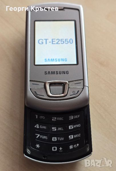 E2550 - телефона се включва и работи, тестван с А1, зарежда си батерията, която не е пробвана, но би трябвало да е ОК, активен и стегнат слайд, добър външен вид, стъклото на панела е леко захабено, клавиатурата и микрофона са ОК, слушалката НЕ, не чувате, функционалните бутони НЕ работят, само червената слушалка е ОК, без зарядно.