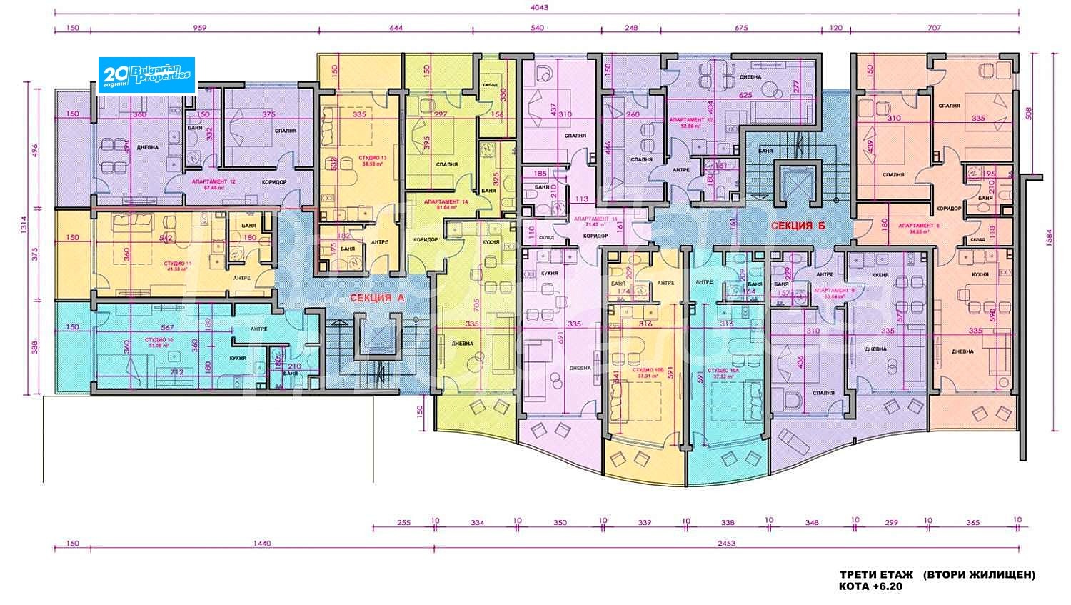 Имотът се характеризира с качествено строителство и висок клас на вложението материали. Апартаменти се издават на тапа: