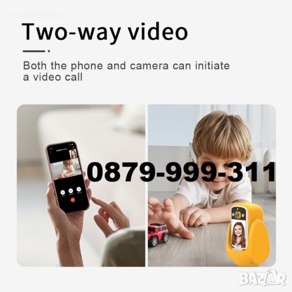 Смарт камера бебефон подходяща за видео разговори с възрастни хора или с малки деца. Тази камера има детектор за движение чрез който, можете да получите известие на телефона си. Това я прави подходяща и за охранителни цели. Също така камерата има вградена AI технология за разпознаване и следене на човек. Това означава, че може да проследи движението на човек пред нея съвсем сама, без да е необходимо вие да правите нищо. Хубавото при този модел е, че разполага със слот за карта памет до 128GB, който ви позволява да запишете всеки един момент.