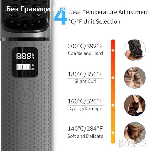 Нова Безжична Преносима Четка за Коса USB Зареждане, 4 Температури