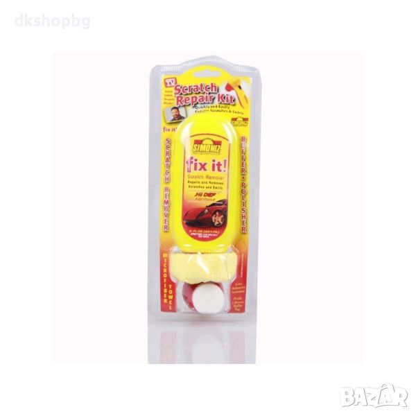 Scratch Remover Repair Polish Kit е слабо абразивен, и е една уникална система за ремонт, използваща технология наречена "пластична деформация", която ефективно премахва драскотини в дълбочина от всички бои и покрития бързо и безопасно, практически завинаги, спестявайки Ви стотици левове за ремонт.