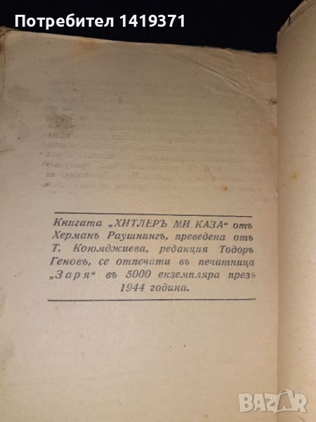Стара книга от Втората световна 1944г - Хитлеръ ми каза - Поверителни разговори на фюрера