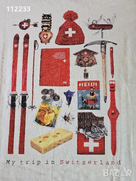 Изключително интересна тениска с всички символи на Швейцария.Като нова. Дължина 66 см. гръдна обиколка 100 см.