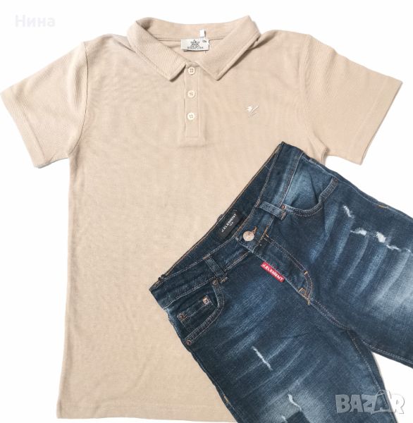 Тениска с якичка в бежово, от фина и супер лека материя 🔝