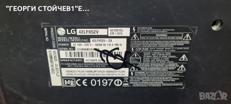 42LF652V  LD LE51H  EAX66207203[1.0]  EBT63736702  EAX66203001[1.6]  LC420DUH[MG[P1], снимка 1 - Части и Платки - 45668736 42LF652V  LD LE51H  EAX66207203[1.0]  EBT63736702  EAX66203001[1.6]  LC420DUH[MG[P1], снимка 2 - Части и Платки - 45668736 42LF652V  LD LE51H  EAX66207203[1.0]  EBT63736702  EAX66203001[1.6]  LC420DUH[MG[P1], снимка 3 - Части и Платки - 45668736 42LF652V  LD LE51H  EAX66207203[1.0]  EBT63736702  EAX66203001[1.6]  LC420DUH[MG[P1], снимка 4 - Части и Платки - 45668736 42LF652V  LD LE51H  EAX66207203[1.0]  EBT63736702  EAX66203001[1.6]  LC420DUH[MG[P1], снимка 5 - Части и Платки - 45668736 42LF652V  LD LE51H  EAX66207203[1.0]  EBT63736702  EAX66203001[1.6]  LC420DUH[MG[P1], снимка 6 - Части и Платки - 45668736 1/6