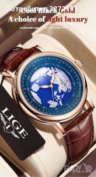 LIGE Relogio Masculino моден кварцов часовниk модел 2024,водоусточив,кожена каишка,уникален дизайн Fashion Blue Planet Creative Earth