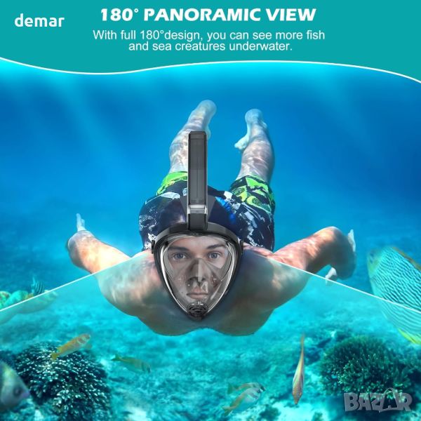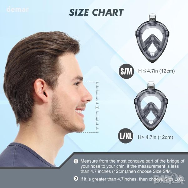 Цялолицевата маска за шнорхел KUYOU разполага с усъвършенствана система за циркулация на дишането, която повишава безопасността, като осигурява всмукване на свеж въздух и ефективно изхвърляне на въглероден диоксид, намалявайки остатъците от газ с 30%. Той предлага 180° панорамна гледка с прозрачна плоска леща за неизкривена подводна визия и 92% скорост на пропускане на светлина, оборудван с технология против замъгляване за ясна видимост. Маската е изработена от клас A PC и хранителен силикон, осигуряващ издръжливост, комфорт и ефективно уплътнение против течове. Дизайнът включва конски опашки и разпределя тежестта равномерно за дълготраен комфорт. Идеална за пътуване, маската включва сгъваема дихателна тръба и чанта за съхранение, което я прави лесна за опаковане и защита, като същевременно повишава удобството и хигиената по време на пътувания.