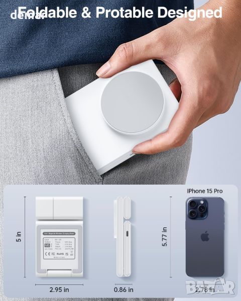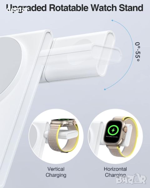 Тази станция за бързо безжично зареждане 3 в 1 е проектирана да зарежда няколко устройства на Apple едновременно—съвместима с най-новите модели iPhone, широка гама часовници на Apple и версии на AirPods. Той се отличава със сгъваем и преносим дизайн, идеален за пътуване, като елиминира необходимостта от заплетени кабели. Оборудван с мощни магнити и 20 W PD3.0 USB-C адаптер, той предлага бързи скорости на зареждане до 15 W за iPhone, 5 W за AirPods и 3 W за Apple Watches. Станцията за зареждане включва въртяща се стойка за зареждане на часовник, която позволява както вертикални, така и хоризонтални позиции за зареждане, подобрявайки гъвкавостта. Освен това, той осигурява безопасно зареждане с вграден интелигентен IC чип за предотвратяване на прегряване и презареждане. Пакетът се доставя с USB-C PD3.0 20W адаптер и кабел за бързо зареждане, което го прави практичен избор за подарък,