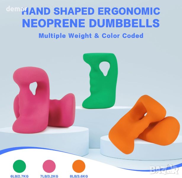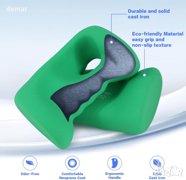 Ергономичните дъмбели HXD-ERGO, проектирани да отговарят на човешката длан, осигуряват удобен захват, който намалява умората на китките, идеални за различни кардио тренировки, включително бягане, йога и бокс. Тези дъмбели разполагат със солидна чугунена сърцевина с неопреново покритие за издръжливост, нехлъзгащо боравене и лесно почистване. Те са естетически издържани, предлагат се в атрактивни цветове и могат да се съхраняват на стандартни поставки за дъмбели. Перфектен като декоративен и функционален подарък за фитнес ентусиасти, комплектът включва полезни практически съвети.