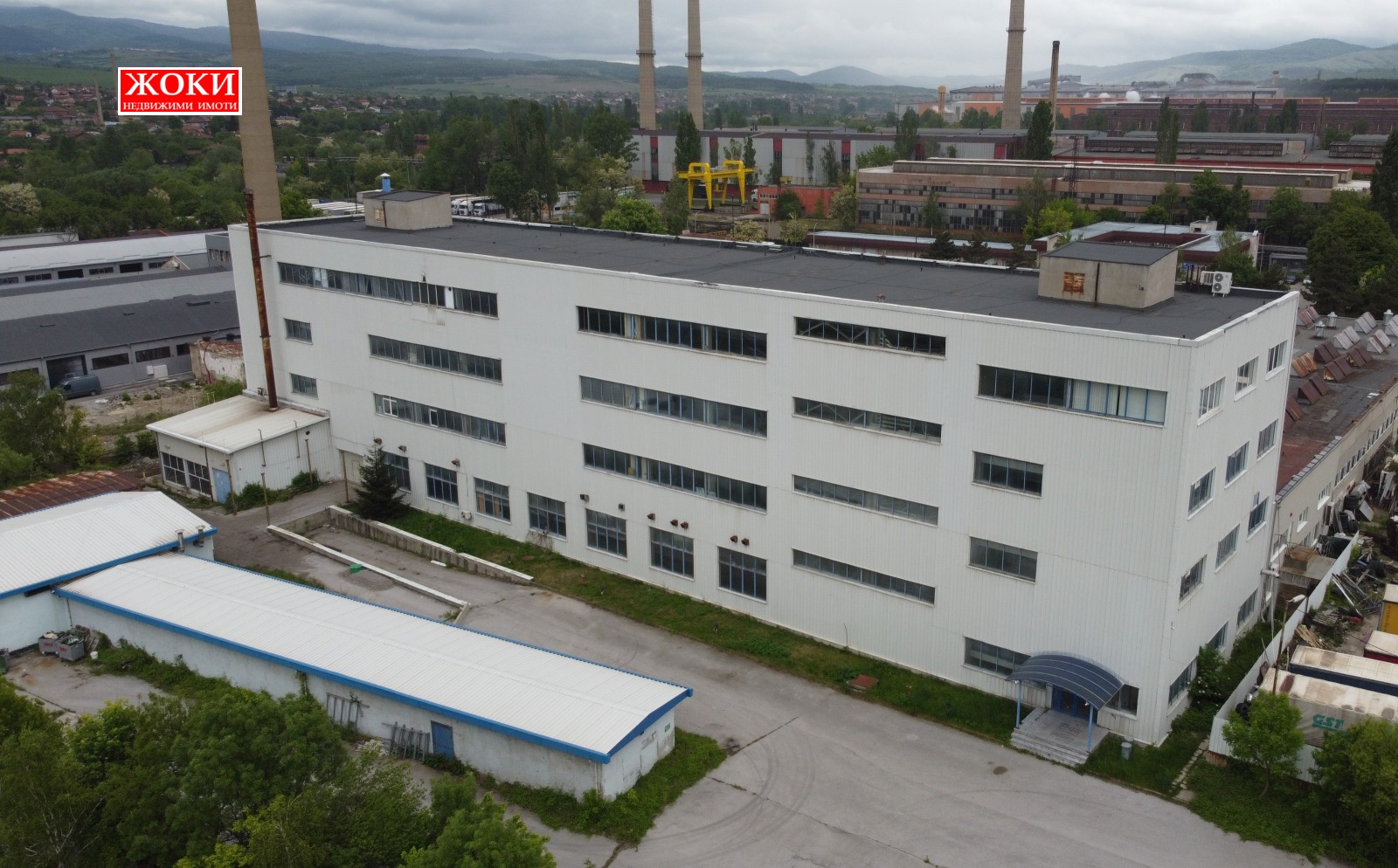 Агенция ЖОКИ предлага за продажба четириетажна промишлена сграда в гр. Перник, кв. Изток промишлена зона, РЗП 6224 кв. м., състояща се от две стълбищни клетки с четири асансьора /два пътничести и два товарни/, големи работни помещения, офиси и санитарни възли. Партерният етаж е с площ 1556 кв. м. и височина 6 метра, с кран с товароподемност 1 тон и с допълнителен товарен вход. Останалите 3 етажа са със същата площ 1556 кв. м. и с височина 4.80 метра. Сградата е ремонтирана през 2007 година, с външна изолация. Захранена е от трафопост с параметри 20/0.4/0.231кV, 800 KVA с кабелно захранване с кабели 20 кV., отделни партиди на етажите. Налични са питеен и промишлен водопровод, пречиствателна станция и канализация. Възможност за присъединяване към газопреносна мрежа. Сградата е разположена в собствен парцел с площ от 7261 кв. м., асфалтиран, с контролиран достъп и с изградена товарна рампа и паркинг. В имота има и няколко едноетажни сгради с площи 107 кв. м., 230 кв. м., 246 кв. м. и 139 кв. м.. Имотът е с отлична локация и достъп, с излаз на Е871/ Куманово-София/, в близост до автомагистрала Струма, завод Стомана, Митница и др. Възможност за допълнително застрояване в парцела. За повече информация: Тел. 0888548867, 0888227490