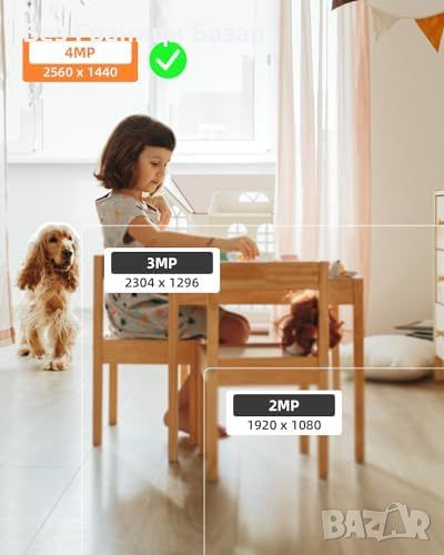 4MP Супер HD Резолюция: Заснема висококачествени детайли, осигурявайки ефективно наблюдение в домашни условия денем и нощем.