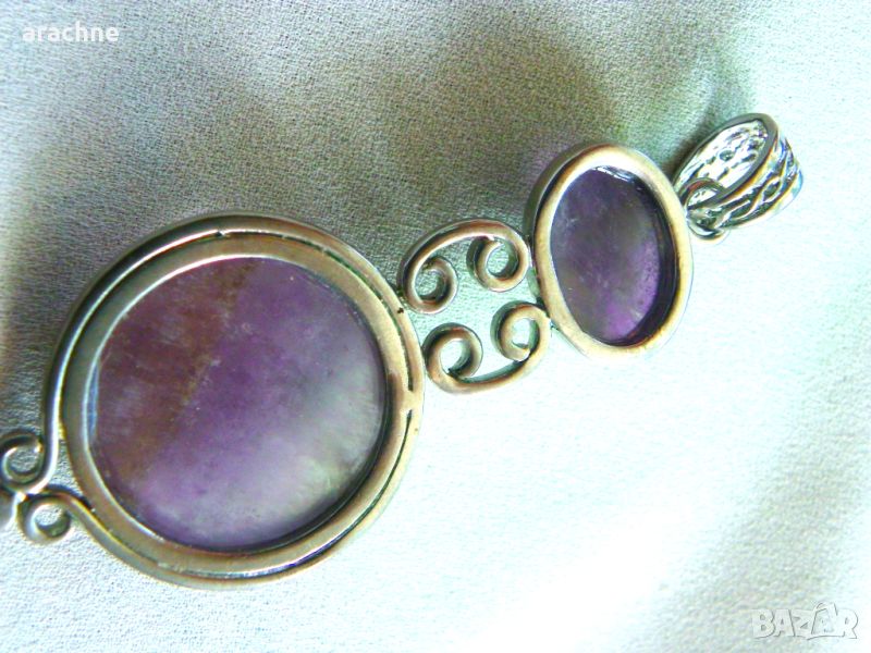 Много голям сребърен медальон с аметисти → Обява 45671164