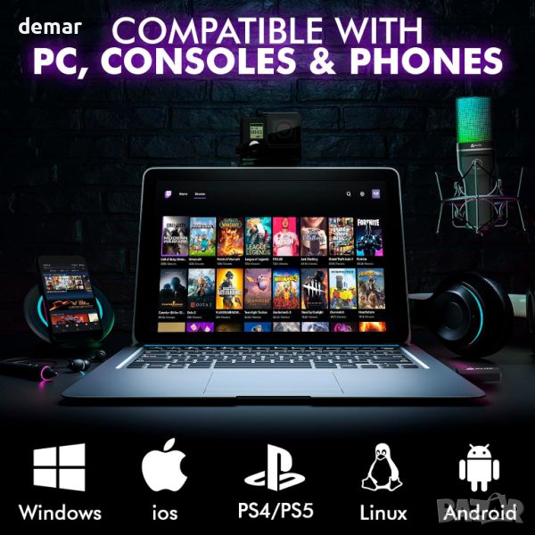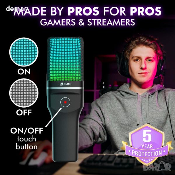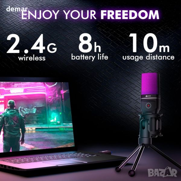 Насладете се на безпроблемна безжична игра с 2,4GHz технология, осигуряваща стабилна връзка до 10 метра и безпроблемна настройка. Микрофонът KLIM Muse, включващ висококачествена кондензаторна технология и активно шумопотискане, осигурява кристално чист звук, идеален за стрийминг и игри. Подобрете средата си за игри с динамично RGB осветление. Микрофонът предлага лесна работа с включване и пускане чрез USB донгъл, съвместим с компютри и игрови конзоли, без да изисква допълнителни драйвери.