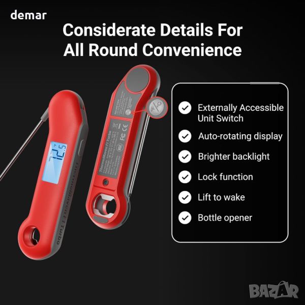Цифров термометър за месо, Термометър за храна с незабавно отчитане по-малко от 1 секунда, IP67