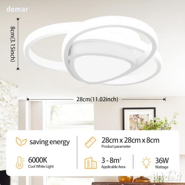 Тази елегантна и елегантна LED лампа за таван съчетава стил и ефективност, идеална за различни стилове на домашен декор. Той включва 36W, 6000K студено бял, високоефективен светодиод, който осигурява ярко и равномерно осветление, проектиран да спести около 85% от сметките за електричество със своя живот от 30 000 часа. Светлината се включва моментално, без трептене и нежна към очите. Изработена от издръжливо желязо, алуминий и акрил с устойчиво на печене покритие, тази плафониера е идеална за множество пространства (5-15 кв.м.), включително коридори, жилищни помещения и др.