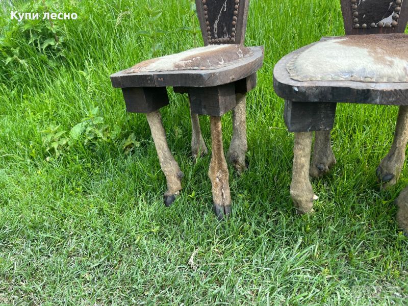 Внос Франция краката са от еленови копита.цената е за целия комлект.много рядко столове.двете искат малко ремонт по краката.работя с Еконт или Спиди за цялата страна.разгледайте и другите ми обяви не се притеснявайте да пишете или звъните.