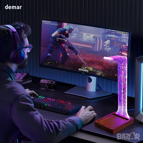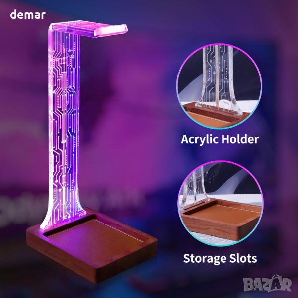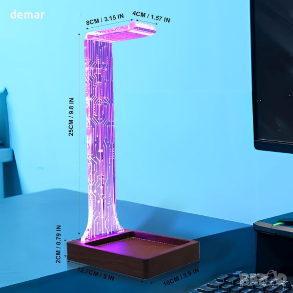 Тази стойка за слушалки разполага с уникален 7-образен дизайн с печатна платка и светещ ефект, идеален за добавяне на високотехнологичен, киберпънк привкус към вашата настройка. Изработен от издръжливо орехово дърво и прозрачен акрил, той е устойчив на надраскване и напукване, подобрявайки всеки декор с елегантната си простота. Стойката е лесна за сглобяване, захранва се от USB за непрекъснато осветление и е енергийно ефективна. Това е отличен избор за геймъри и музикални ентусиасти, предлагащ както стил, така и функционалност в поразителен, практичен дизайн.