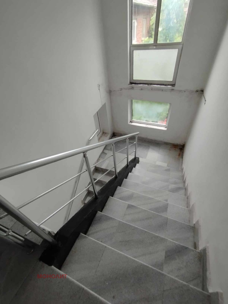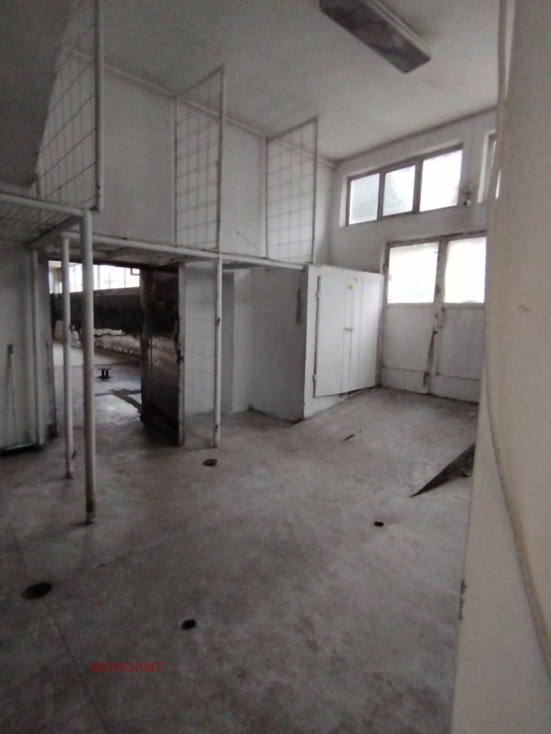 неръждаема ламарина на височина 1,70м, в останалата част - боядисани. Монтирана е пречиствателна система за отвеждане на парите. По вътрешно стоманобетоново стълбище се достига до втори етаж, където са обособени склад за пакетиране на готова продукция, битово помещение, два офиса, сервизни помещения и съблекални. Подова настилка - гранитогрес, теракот. Стените в склада са покрити с неръждаема стомана на височина 1,70м, в останалата част - боядисани. Отоплението на сградата се осъществява с локално отопление на твърдо гориво - котлет и радиатори, в офисната част са монтирани и климатици. В западната част на сградата е монтиран външен товарен асансьор - телфер. Офисно - битовата част е разположена в източната част на сградата, откъдето е официалния вход. Дворното място е 1102кв.м.