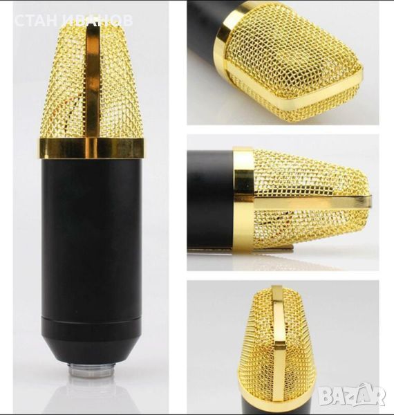 Универсален студио микрофон, комплект със стойка за бюро, кабел (XRL - 3.5 mm), държач, поп-филтър, предпазен дунапрен.