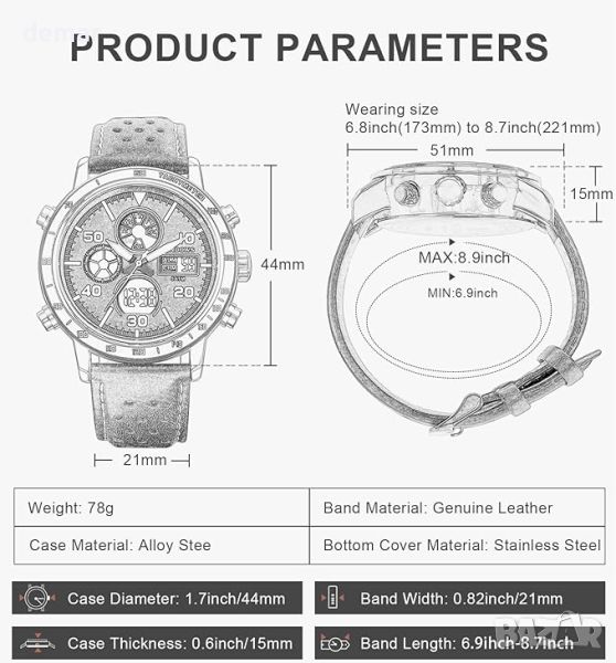 Мъжкият дигитален часовник PINDOWS съчетава лукс и функционалност с японски внесен механизъм и батерия за точно отчитане на времето и каишка от естествена кожа. Той се отличава с многофункционален дизайн с хронограф, почасово звънене и LED задно осветяване, всички показани върху издръжлив циферблат с минерално стъкло против надраскване и екологично чист корпус с вакуумно покритие. Водоустойчив до 50M, този часовник е подходящ за плуване и други дейности на открито, но не се препоръчва за гмуркане или гореща среда. Опакован в изящна кутия, той е прекрасен подарък за различни поводи като рождени дни, годишнини и празници, като се вписва безпроблемно както в ежедневна, така и в официална обстановка.