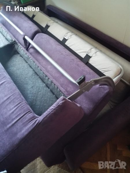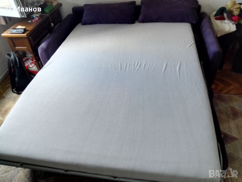 Диванът е почти нов, използван е две седмици. Изключително удобен за разпъване и прибиране - прави се с един ход. С матрак 13 см. Има джобове в които се прибира спалното бельо и се сгъва без да е необходимо да се ползва друг шкаф за това. Наложи се да го продавам защото синът ми се пренесе в къщи с неговите си мебели и вече няма място.