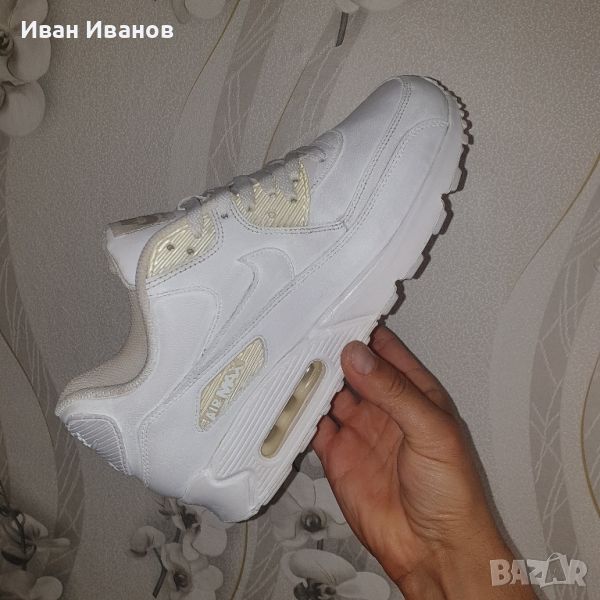 Nike Air Max 90 'White Leather' 302519-113100 процента оригинални . Много малко използвани , без следи и наранявания по кожата и без изтърквания по подметката . Перфектно състояние ,КЛАСИКА . Красиви и модерни , стил и комфорт . Цена по магазините около 350 лева . Що се отнася до стил, комфорт и качество, Nike Air Max 90 Leather е в собствената си лига. Тази емблематична маратонка е актуализирана с елегантна кожена горна част, осигуряваща модерен поглед върху класическия дизайн. Характерният вграден модул Air Max осигурява максимален комфорт и поддръжка, докато минималистичният стил прави тази обувка идеална за всяко облекло. Независимо дали отивате на фитнес или в града, Nike Air Max 90 Leather гарантирано ще привлече вниманието.